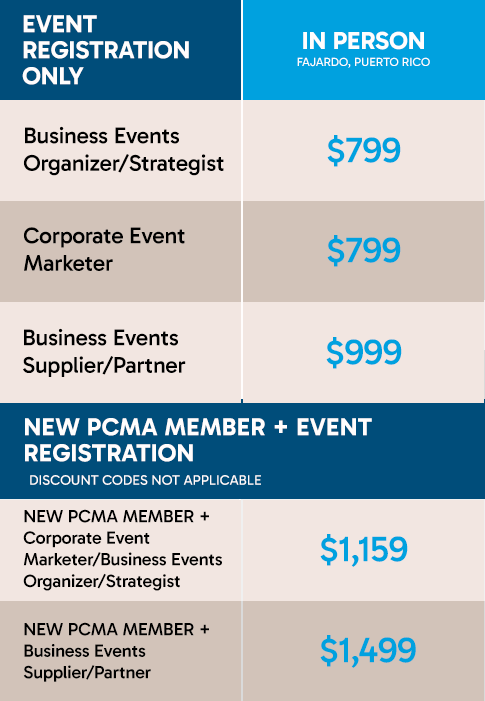 ***Terms and conditions: Offer valid through midnight (Chicago time) November 27, and applicable towards member and non-member registration for organizers and suppliers. Promo code not valid towards student, faculty, new PCMA member, Next Gen or Regional (outside US/CAD) rates. If already registered, we cannot issue a refund credit. We appreciate your understanding. Additional discounts not applicable.